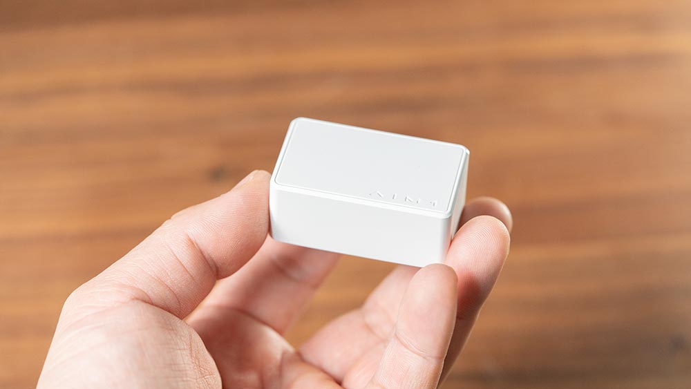 表立ったロゴ的な主張はなく、後ろ側のボトムにAIM1という刻印がされています。ミニマムデザイン。