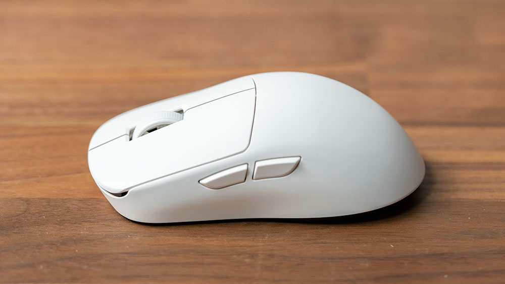 サイズは122 x 61 x 40mmで、ミディアムサイズに分類されるマウス。上から見てみると若干Logicool Superlight味を感じるのですが、そんなことないです。