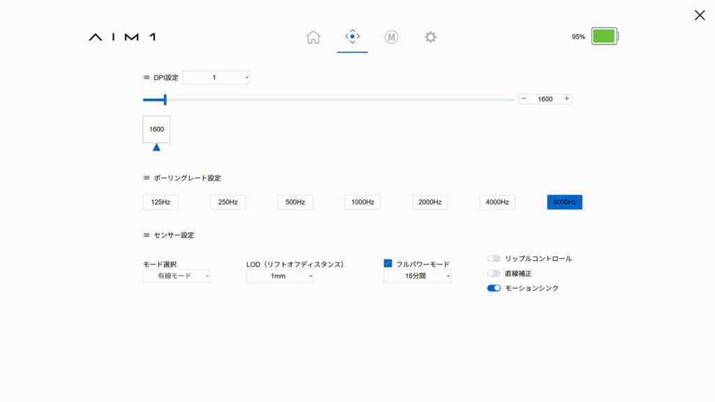 上記のような設定が可能です。ソフトウェアもシンプルな感じでゴテゴテしてない。