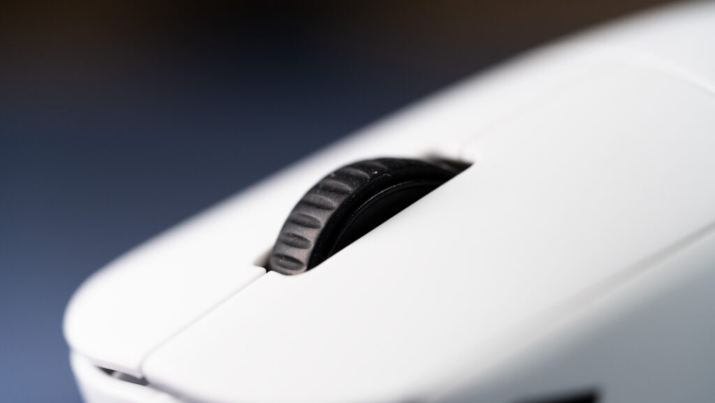 ホイールはやや硬めでノッチ感強め。下にスクロールする分には問題ありませんが、上にスクロールするとやや異音がありました。