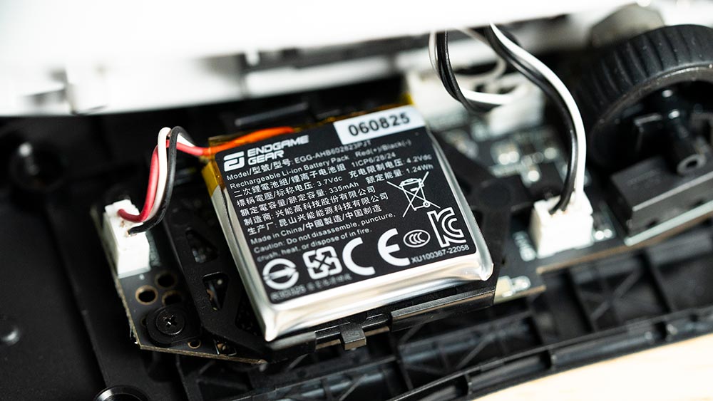 バッテリー容量は335mAhとやや大きめで、4Kポーリングレート使用時でも約30時間程度の駆動が可能とされています。