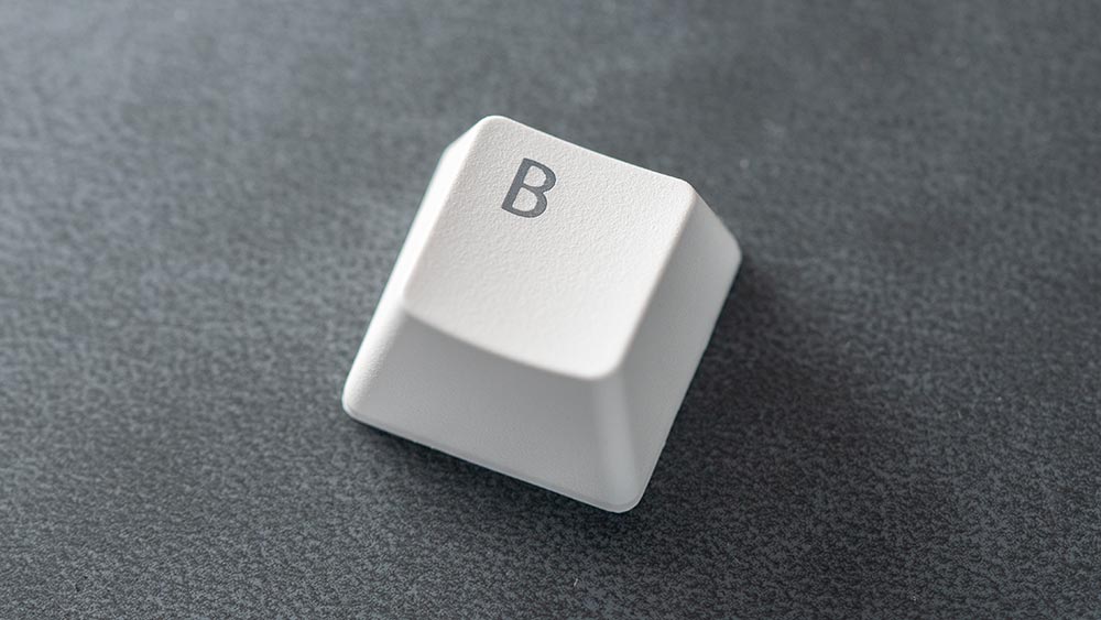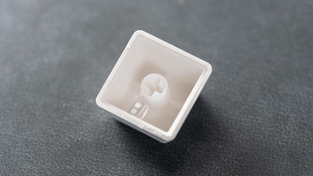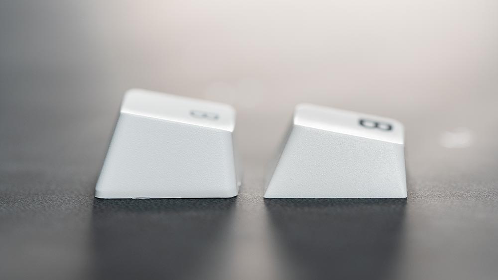 PBTでそれなりに良い質感を持ったキーキャップです。若干ザラつきのある表面をしています。印字は左上寄り。