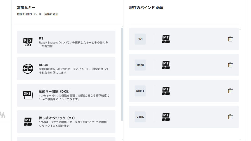 Mod TapやDKSといったラピトリならではの機能もしっかり網羅しています。安いキーボードだとこの辺の機能無視されることがあるのでGOOD。