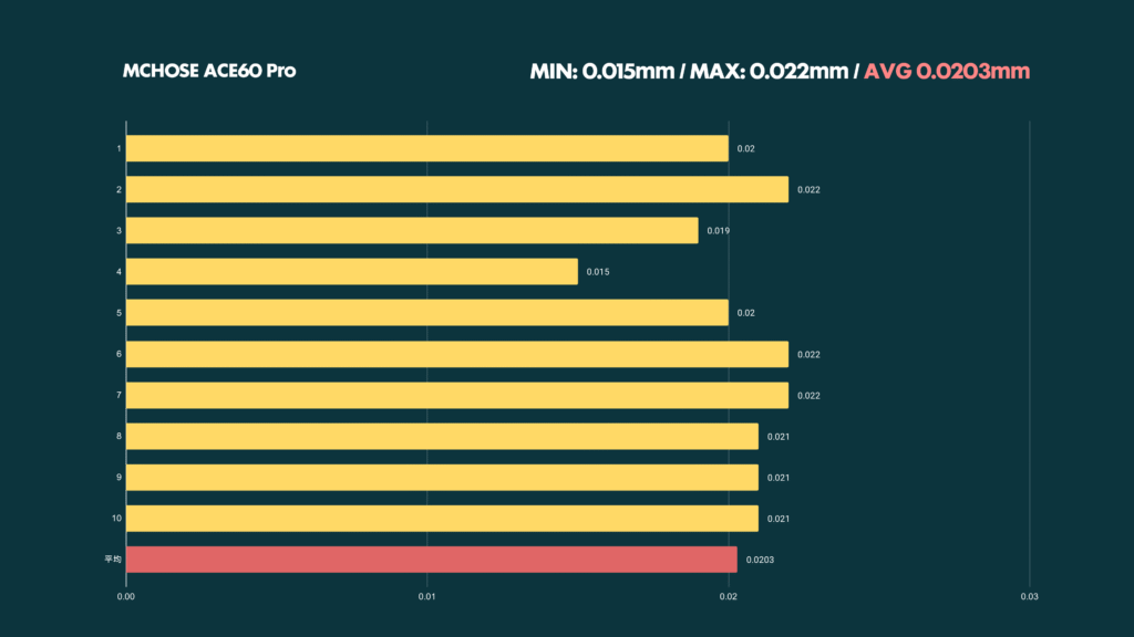 やるじゃないか。0.02mmド安定だよ。もっと数値がブレる甘い作りかと思ってたらとんでもなかった。価格1万円前後でこれ使えるならやばいのでは?