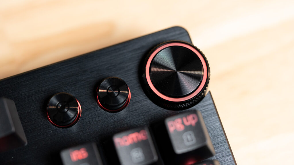 右上にはファンクションボタンが2つとダイヤルが1つ。カスタマイズにより割り当て変更が可能で、自分好みに調整できます。