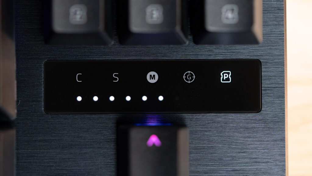 矢印キー上部にはLEDアレイインジケーターを搭載し、ソフトウェアを使わずにアクチュエーションポイントやラピッドトリガー感度の調整が可能です。