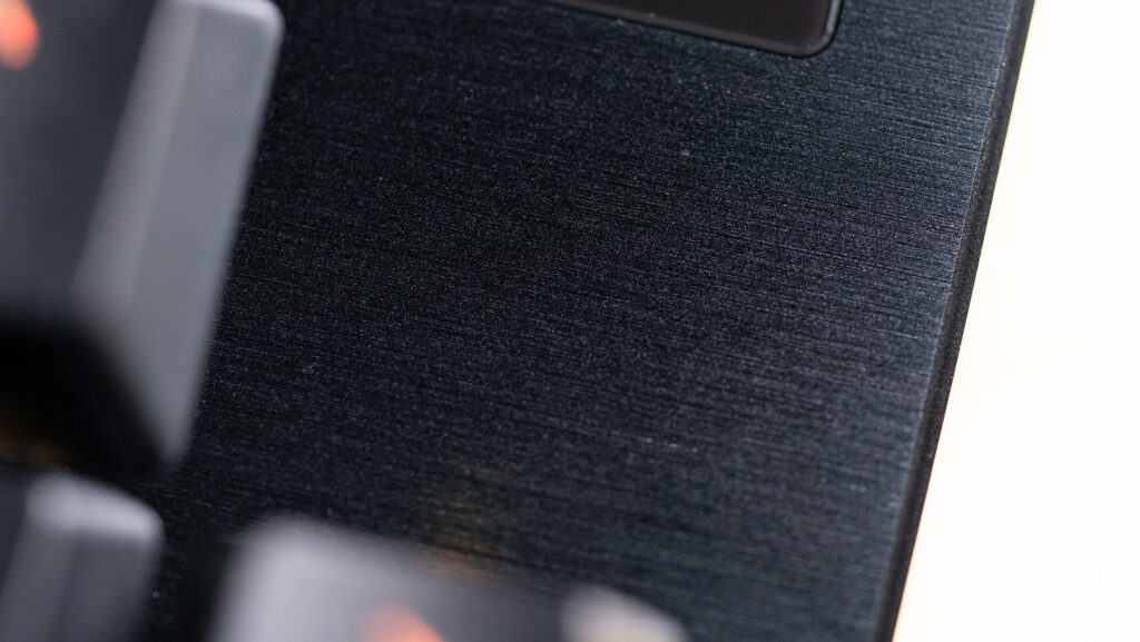 ヘアライン加工が施されたアルミプレートに、ベゼルレスデザインを採用。ライティングが映えやすい構造になっています。