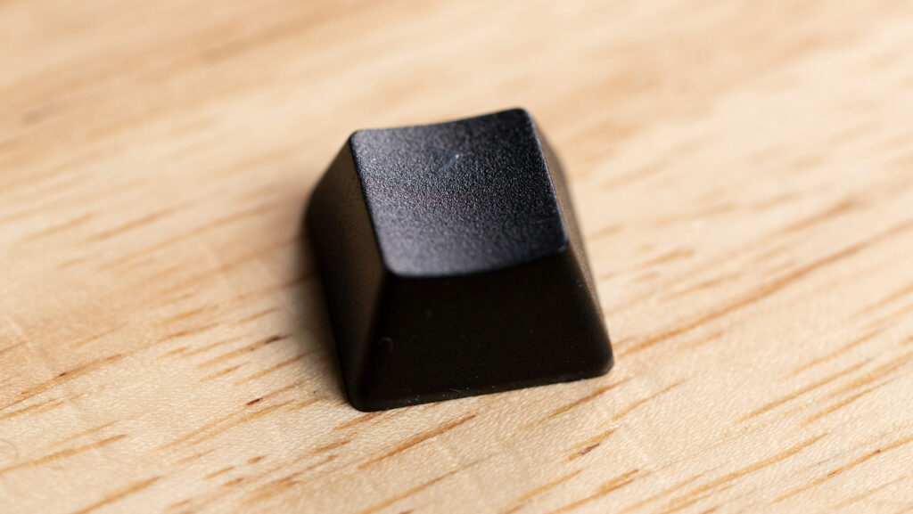 PBTダブルショット成形で、Razerらしい質感。粒子感のあるやや粗めのテクスチャで、触るとうっすらとしたざらつきを感じます。