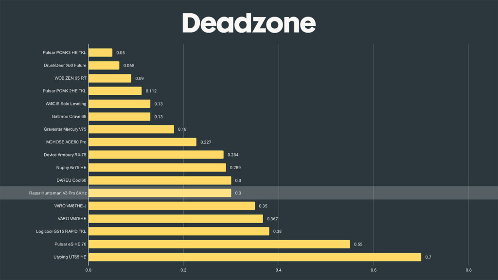 一方、デッドゾーンは最短設定のレスポンシブモードでも実測0.3mm。ここはやや大きめに感じました。
