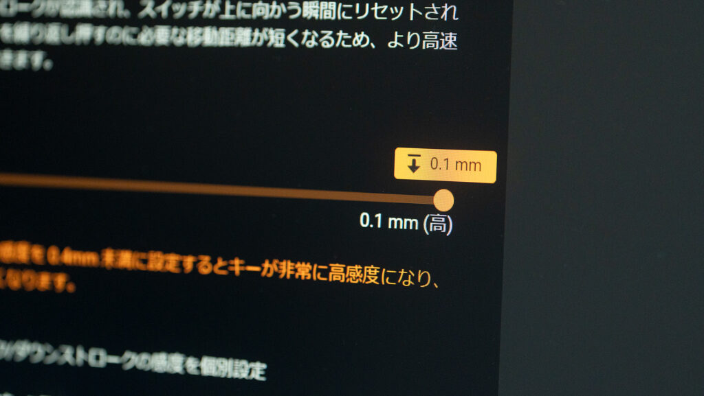 ラピッドトリガーは0.1〜1.0mmまで、0.1mm単位で設定可能です。
